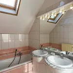 Peaceful Fontenelle Farmhouse villa comes with a bathroom with a spa bathtub, a separate toilet, and a shower. There are a dryer for guests' comfort.